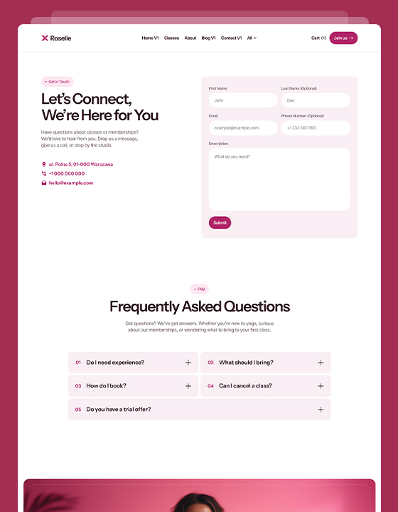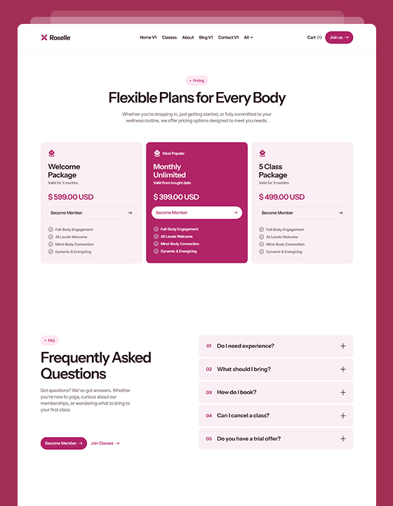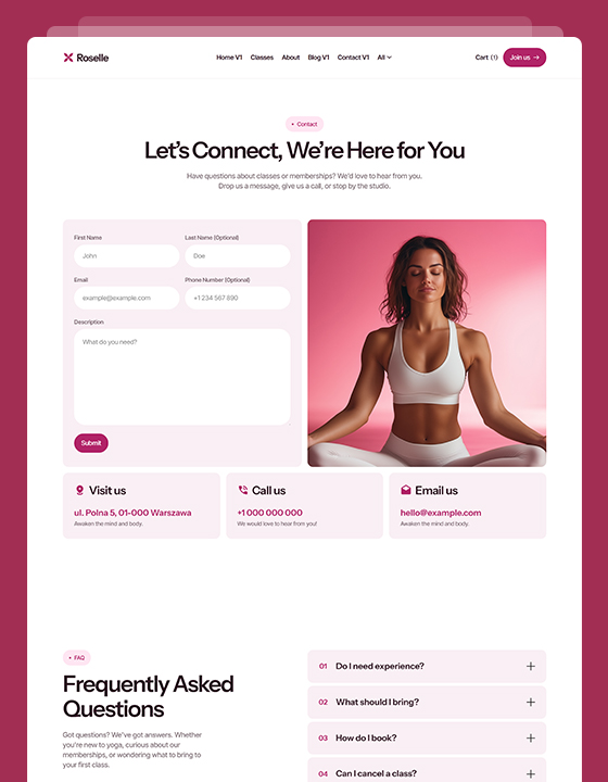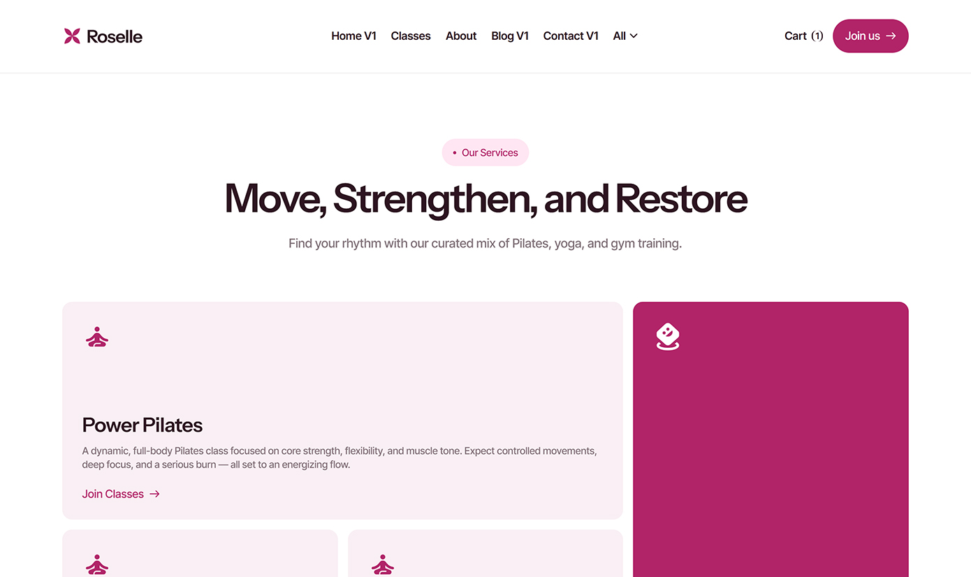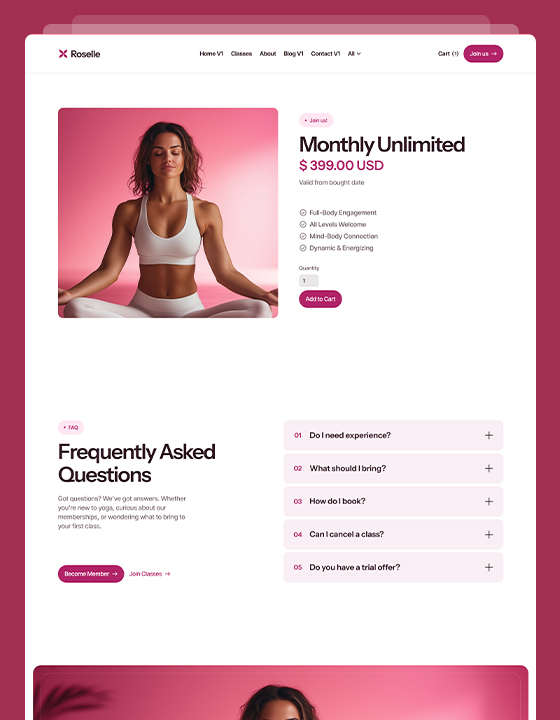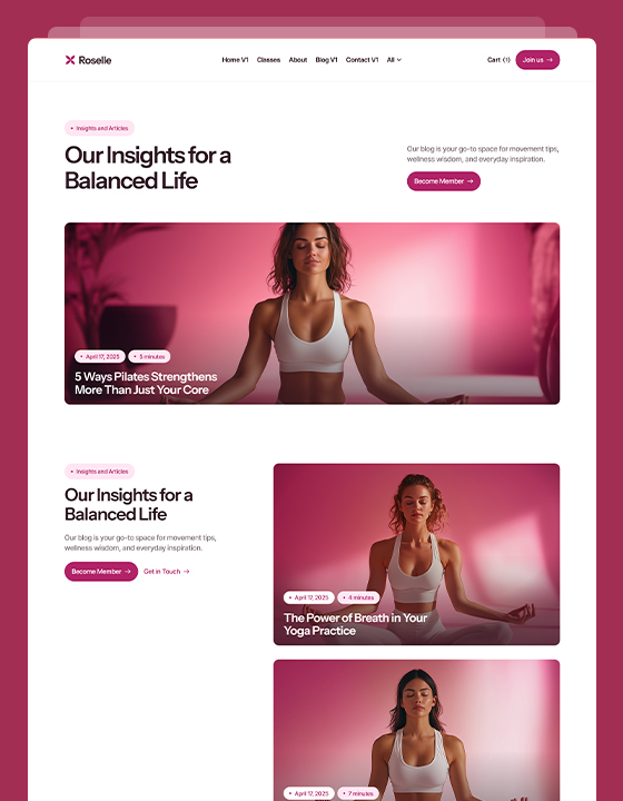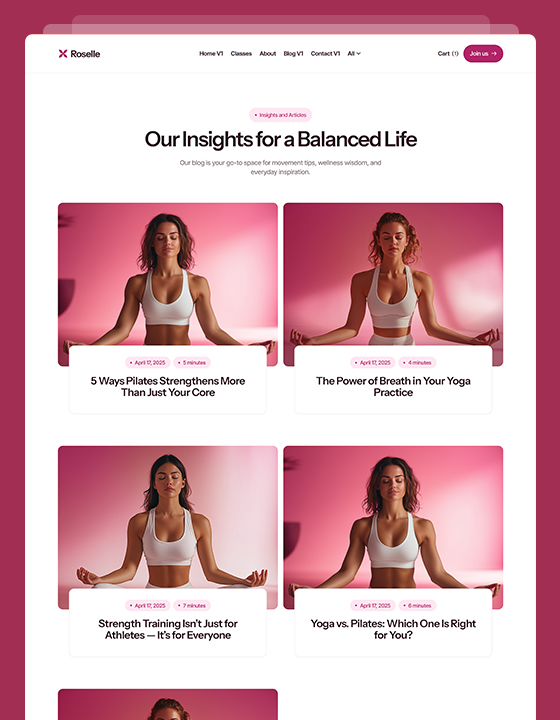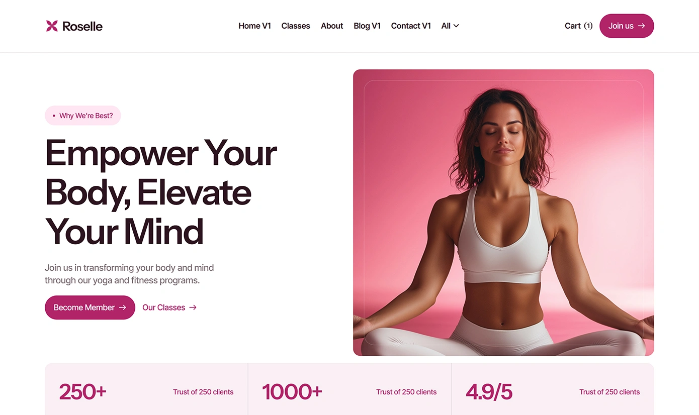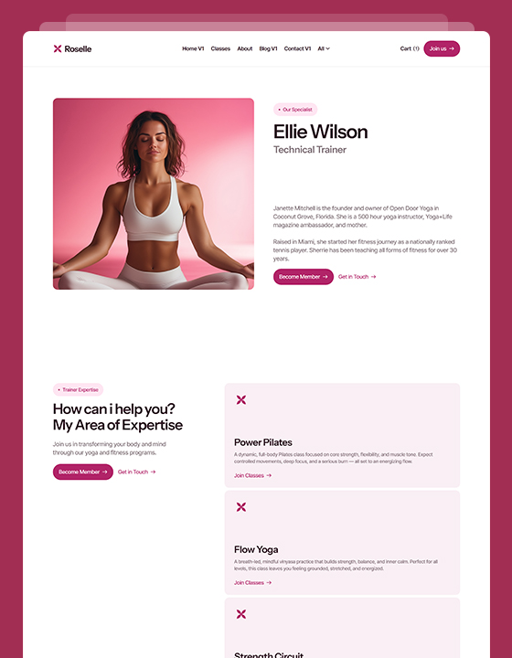 Roselle is a calming, conversion-optimized website template designed specifically for yoga teachers, pilates studios and wellness coaches.